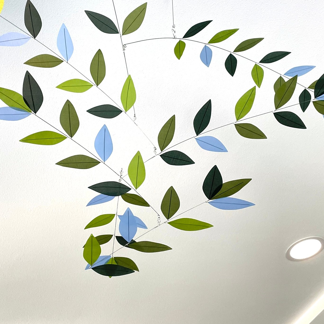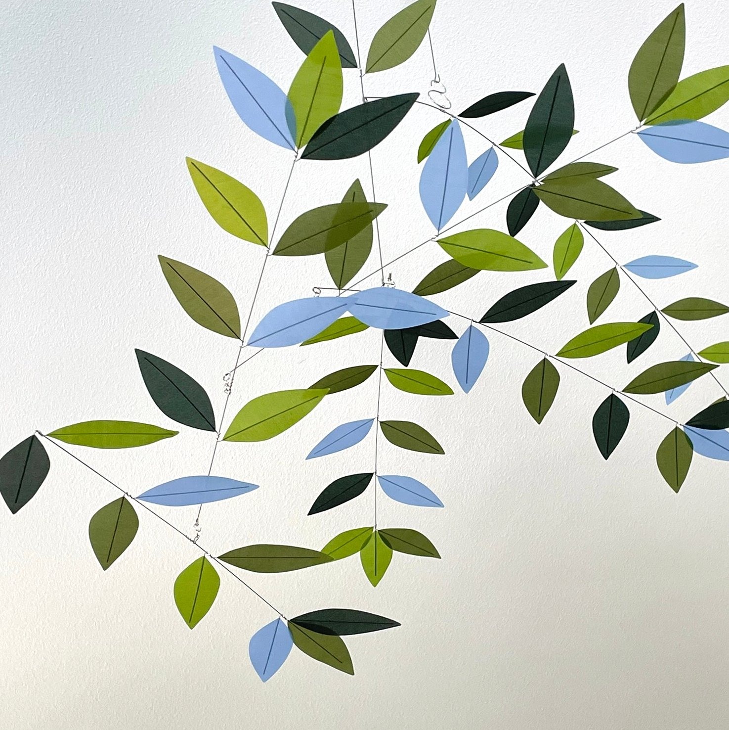 Just like any decorative object, your mobile should be dusted occasionally. It's easiest to take the mobile down, lay it flat on a table, and gently brush the upper side of the leaves with an artist’s brush or soft terry cloth. Take care not to crease the leaves, and wipe in the same direction as the leaf wire.