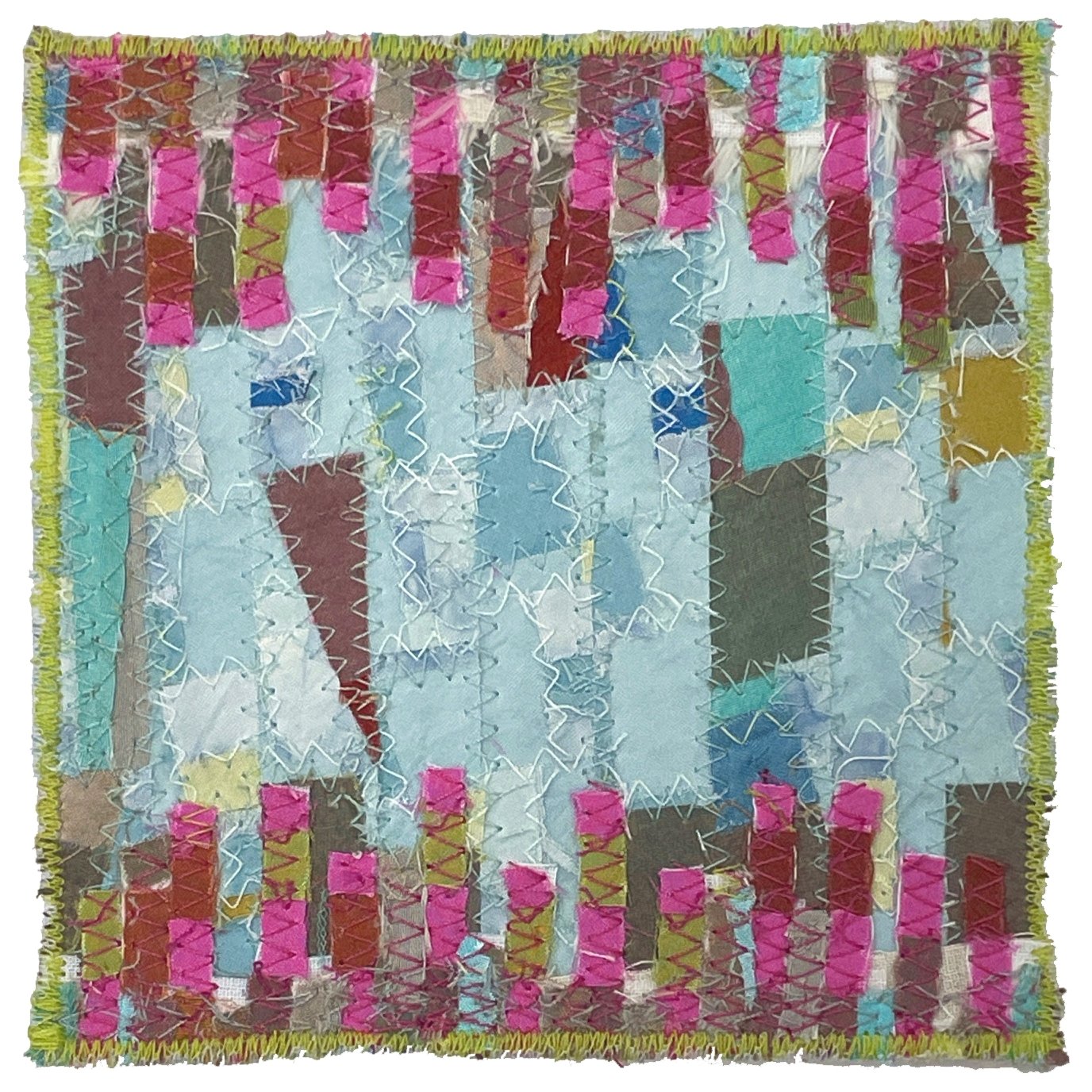 My small textile work is an exploration of growth and change through constant alteration, repetitively slicing and stitching the fabric into new configurations. Without an end goal, I allow each of these tiny textiles to evolve on its own, determining the final composition only when the piece says something meaningful to me.