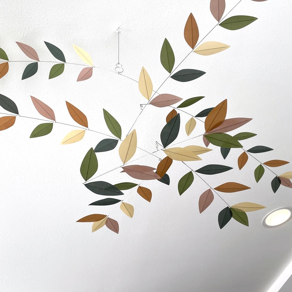 Just like any decorative object, your mobile should be dusted occasionally. It's easiest to take the mobile down, lay it flat on a table, and gently brush the upper side of the leaves with an artist’s brush or soft terry cloth. Take care not to crease the leaves, and wipe in the same direction as the leaf wire.