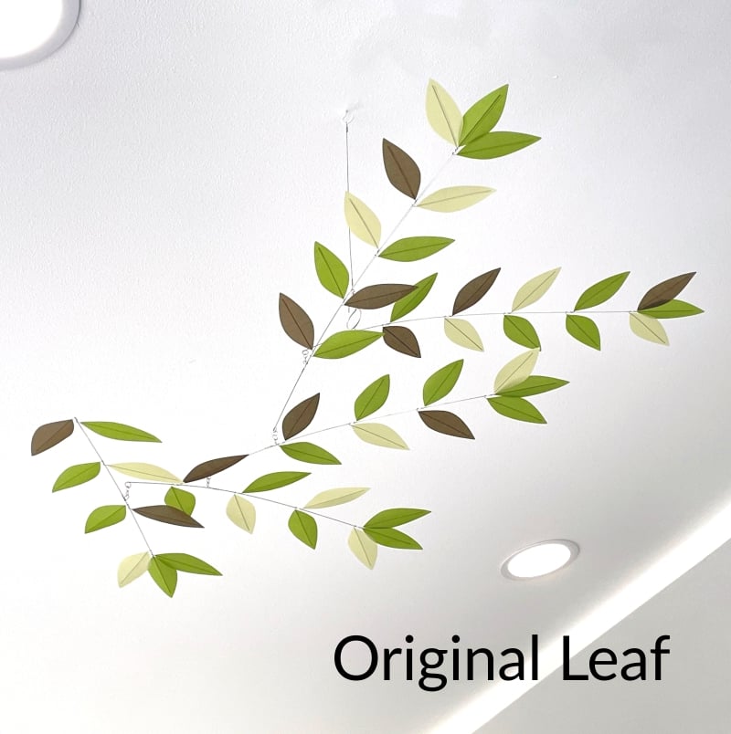 Looking for a SMALLER version of my standard size "Stylized Leaf" mobile in a green palette? This one has 5 arms (branches).